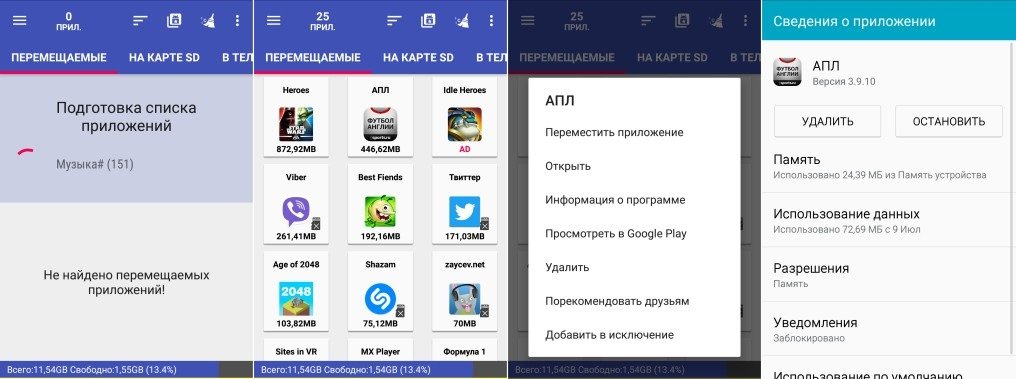 Довольно простая и понятная программа, с помощью которой можно с легкостью перебрасывать фотографии, файлы, приложения с внутренней памяти на внешнюю и обратно
