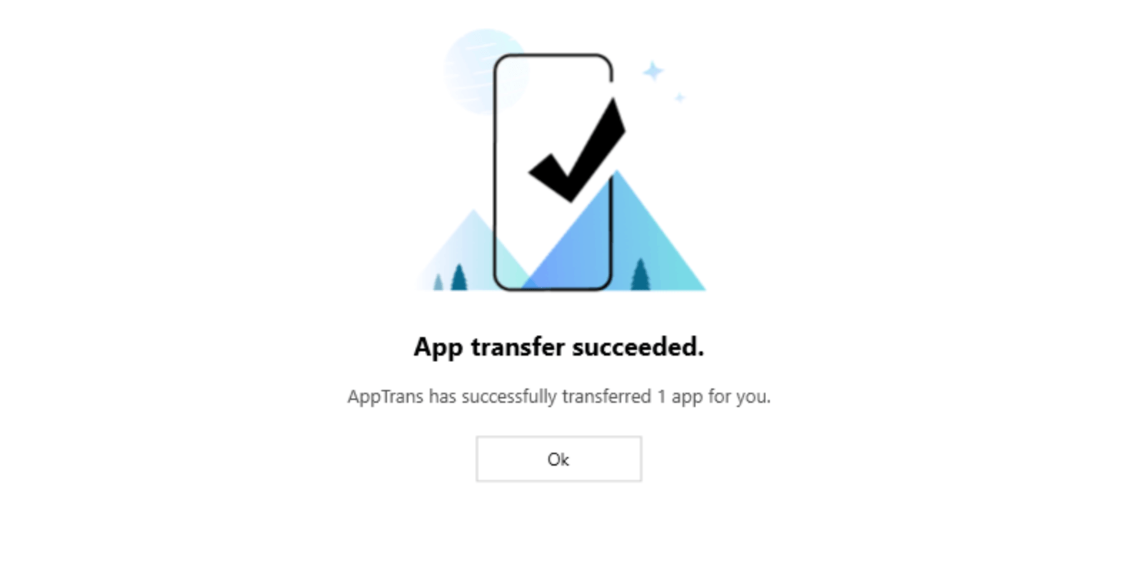 - По окончанию выполнения утилита автоматически отобразит соответствующее оповещение, содержание которого свидетельствует о корректной отправке всех данных мобильного приложения в новый смартфон.