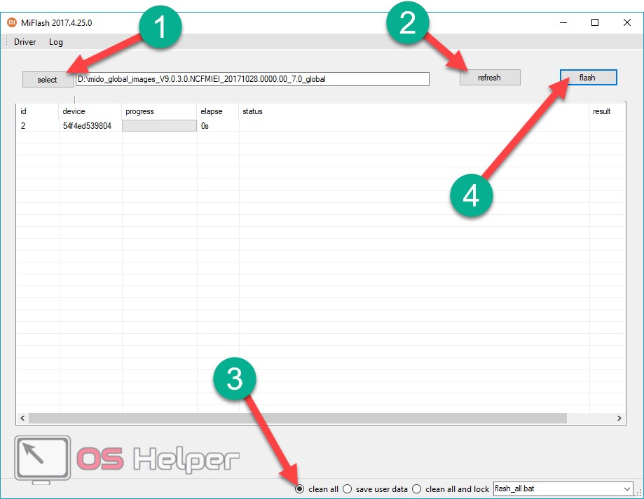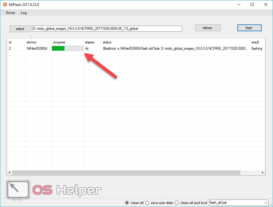 Когда все будет готово, жмем «flash».