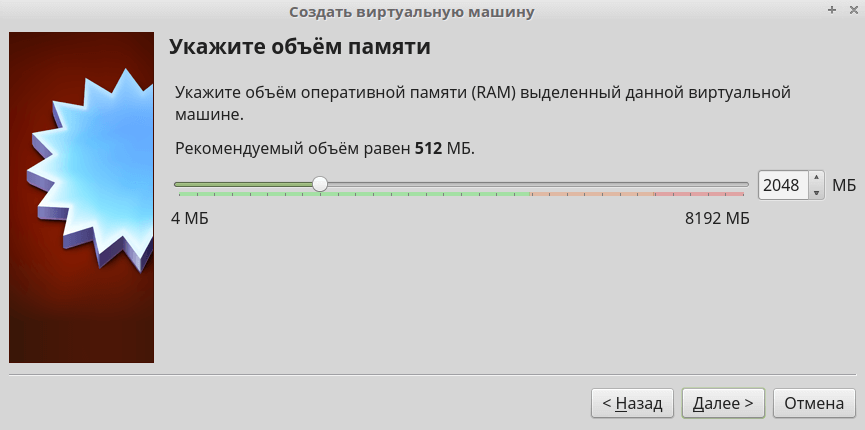 Объем оперативной памяти рекомендую устанавливать не менее 2048 мегабайт, чтобы впечатления от работы с компьютером под управлением Android были такими же, как и при взаимодействии с современным смартфоном.