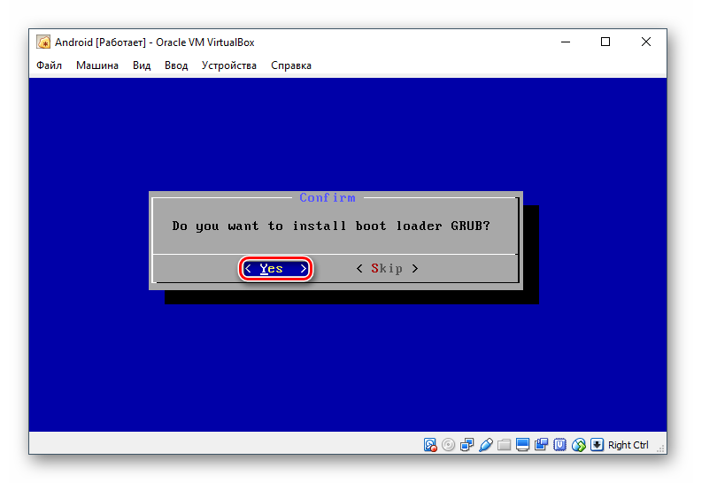 Перезапустите виртуальную машину и в Диспетчере загрузок Grub выберите запись Android -х86 4.4- rl.