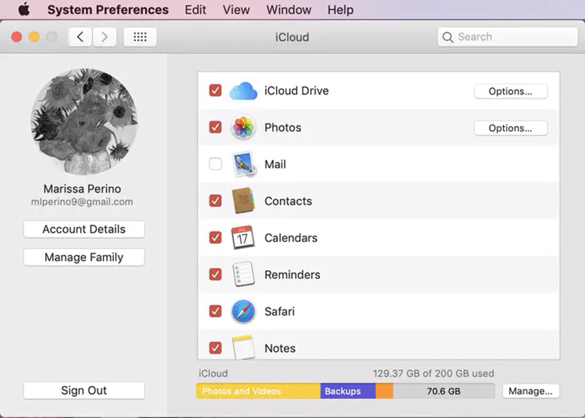 Прокрутите вниз, чтобы увидеть, что будет синхронизировано с iCloud.