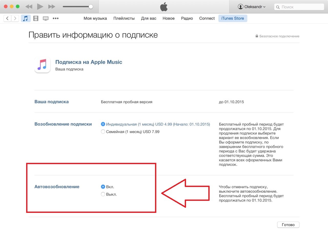 Здесь Вы сможете сменить тариф или отменить автопродление для всех приобретенных подписок, включая Apple Music: