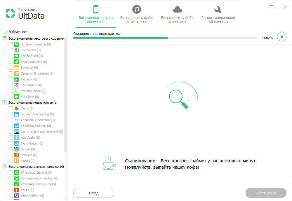 Кроме этого приложение позволяет находить и объединять дублированные контакты, а также удалять контакты без имени или без номера телефона или адреса электронной почты. И UltData может восстановить сообщения, истории вызовов, заметки, видео, фотографии, музыки , WhatsApp сообщения, закладки, календари, учётные записи почты, и бесплатные приложенияи многое другое. К тому же, поддерживает перенести и синхронизировать их с айфон на компьютер. Кроме этого, Вы можете легко управлять важными данными через Tenorshare iCareFone, этот инструмент свободно скинуть видео, фото, музыку и дургие данные с айфона на компьютер.