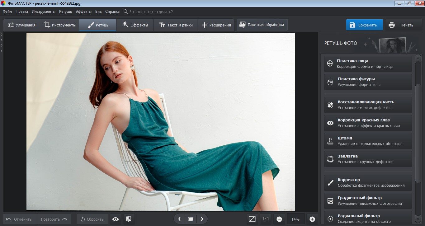 Фоторедактор для ПК от отечественного разработчика. Упростит жизнь и начинающим, и профессиональным ретушерам. В программу заложены автоматические функции, которые помогут тем, кто только начинает осваивать профессию. Одним кликом можно улучшить общее состояние фотографии, стилизовать снимок с помощью 3D Lut или исправить дефекты портрета.