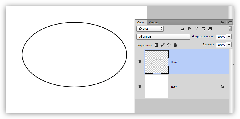 Возьмем инструмент — «Эллипс». В верхнем меню выставим требуемые настройки и создаем фигуру – овал.