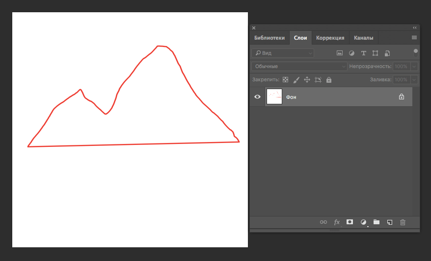 - Самым простым решением для создания такой линии является инструмент «Перо». С его помощью мы можем изобразить все что угодно, начиная с простого угла и заканчивая сложным многоугольником. Подробно об инструменте читайте в статье на нашем сайте.