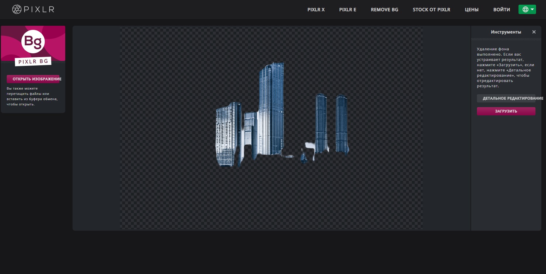 Еще один сервис, который автоматически убирает фон. У него много плюсов – сервис полностью бесплатный, можно загружать большие картинки, изменять размер изображений, есть режим детального редактирования. В финале можно скачать картинку без фона в высоком качестве. Pixlr неплохо убирает монохромный фон, но со сложными картинками сервис работает хуже.