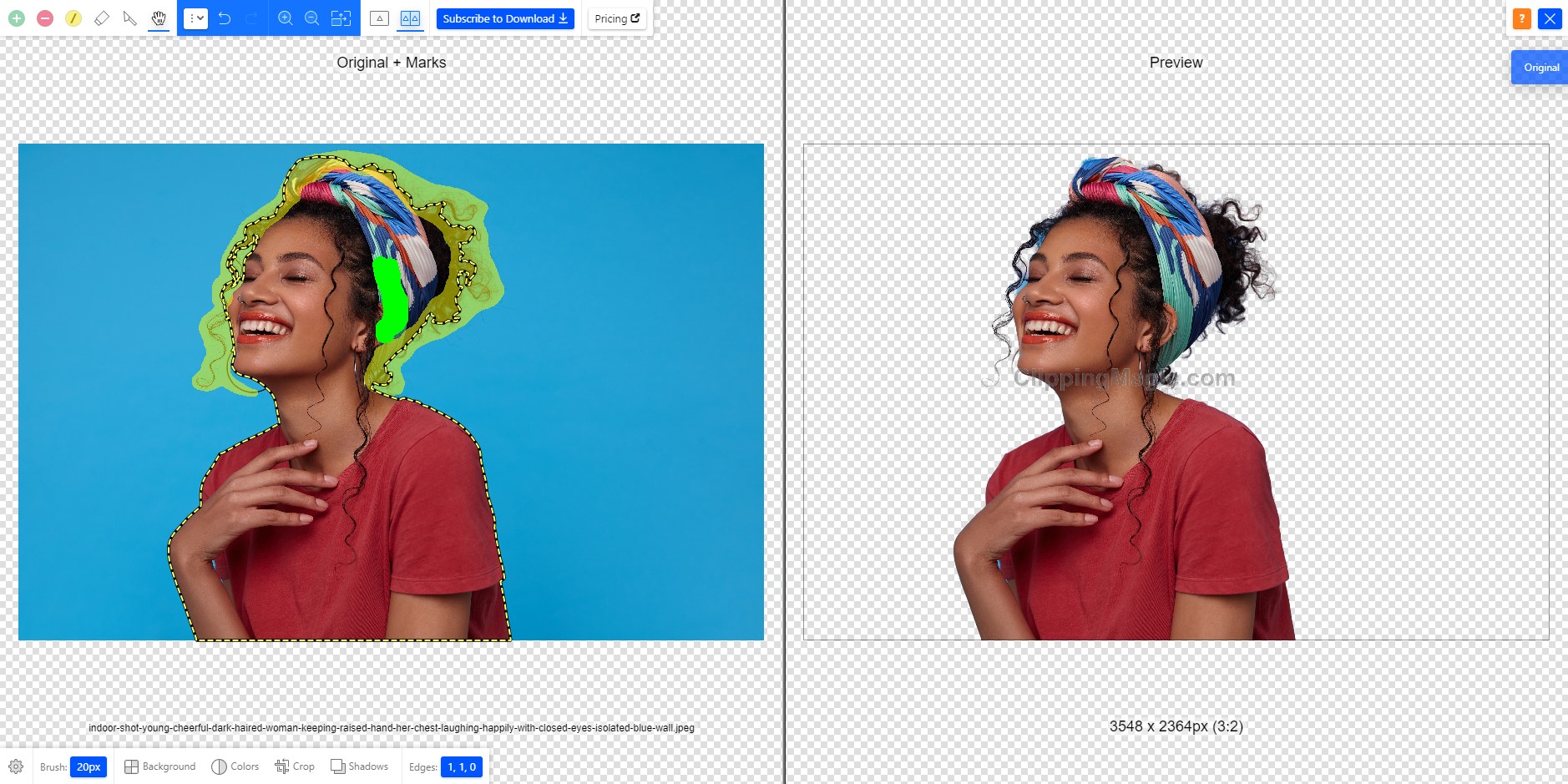 В Clipping Magic вам всегда нужно показывать, какая часть является предметом, а какая — фоном. В настоящее время сервис стоит 4 доллара, если вы хотите скачать результат работы. За 8 долларов появляется возможность массового удаления, т.е. можно загрузить сразу 50 файлов для обработки и затем пачкой скачать обработанные.