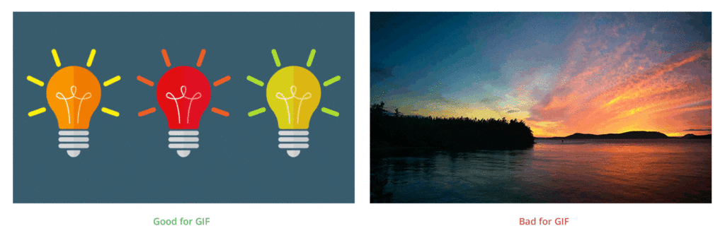 Но … GIF страшен при сжатии вещей, которые имеют даже умеренное количество цветов — его предел 256. Преобразование изображения с числом цветов, большим, чем это, происходит с потерями и выглядит ужасно.