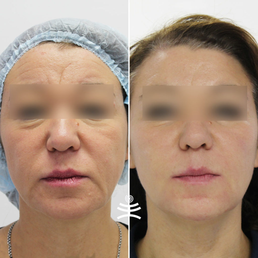 RF-лифтинг лица или радиочастотный лифтинг — это процедура, при которой радиоволны точечно воздействуют на лицо. Обычно на те зоны, которым требуется подтяжка: подбородок, шея, щеки, а также зоны, теряющие упругость и гладкость: лоб, виски, носогубный треугольник. Внутренние слои кожи разогреваются, сосуды расширяются, ускоряется обмен веществ и как результат заметно подтягиваются «брыли», черты лица приподнимаются, овал более выражен. Эффект от RF-лифтинга длительный: новый коллаген начинает интенсивно вырабатываться через 21 день, изменения будут происходить постепенно и сохраняться на срок до 1,5-2 лет.