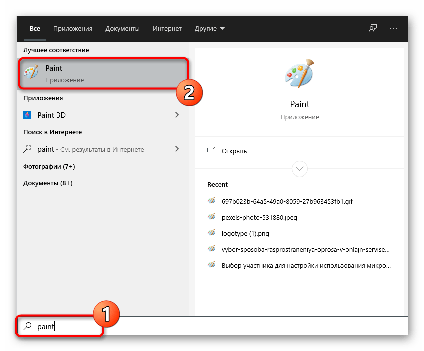 - Откройте меню «Пуск», найдите там «Paint» и запустите данное приложение.
