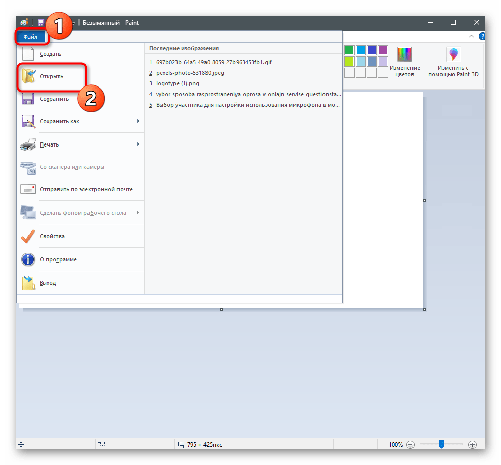 Если возможности использовать Paint 3D нет или вы считаете, что в этом нет необходимости, рассмотрите как альтернативу стандартный Paint. В нем есть функция обрезки, однако прозрачный фон сохраняется только в том случае, если вы копируете вырезанный объект и вставляете его на другую картинку, так же открытую в отдельном окне программы. Если же вы планируете сохранить изображение с прозрачным фоном, этого сделать не получится — он заменится на белый и понадобится дополнительное редактирование. С наложением же функциональность Paint поможет справиться без надобности обращения к другим программам. Заранее подготовьте два изображения для наложения и выполните такие действия: