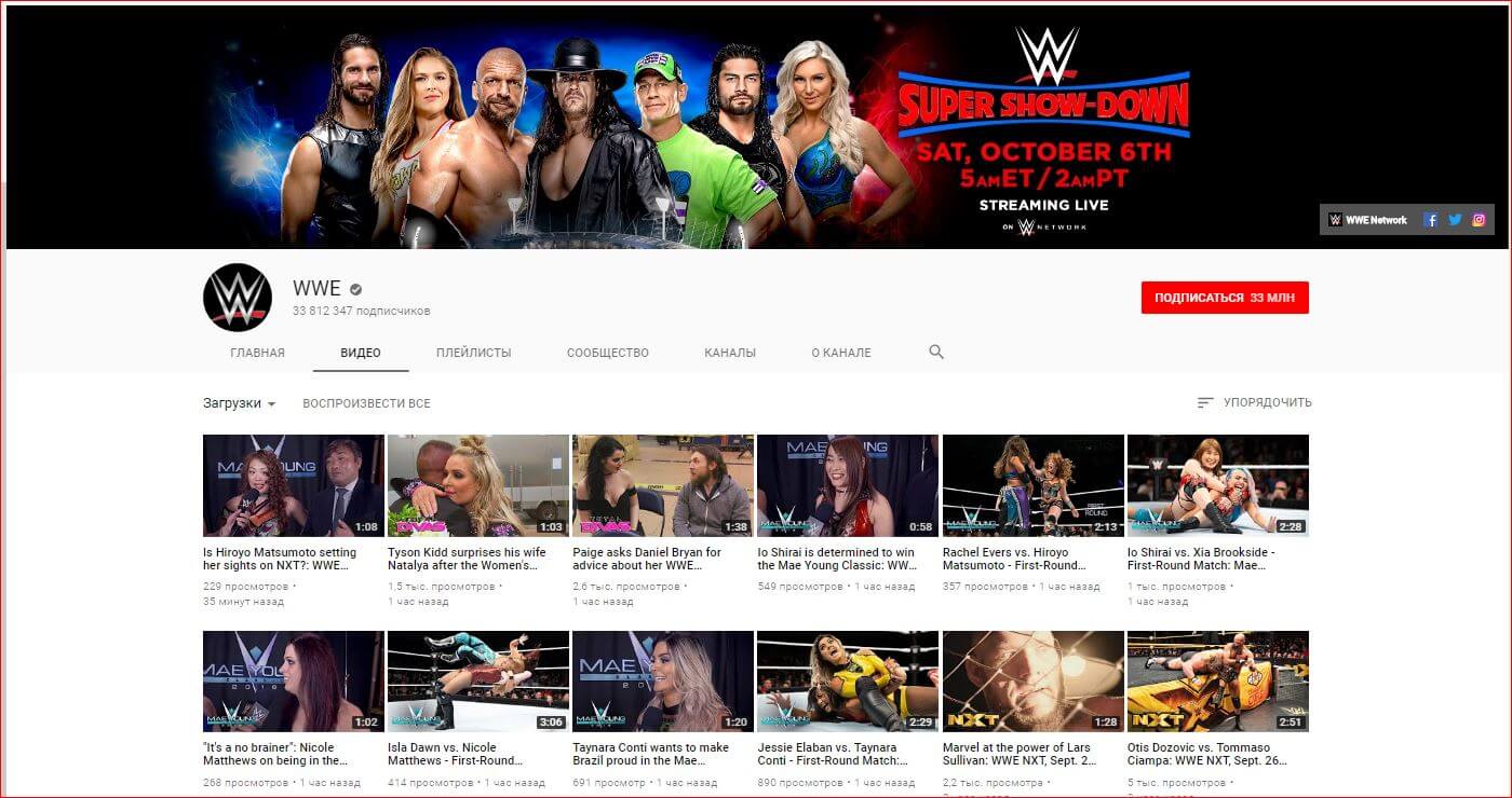 Американское реслинг шоу – постановки с драками. Создатели баннера организации WWE постарались выглядеть круто. Это удалось. Чёрный фон шапки ютуба с крутыми парнями смотрится убедительно. У WWE более 33 миллионов подписчиков. Это тот случай когда популярность и красивый дизайн присутствуют на канале одновременно.