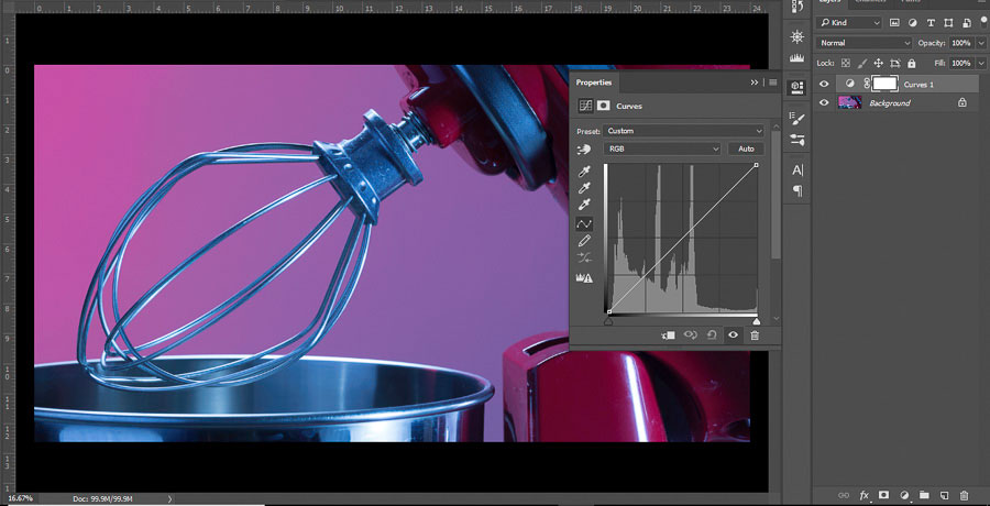 Однако, вы уже знаете, как справляться с проблемными участками – используя кривые! Помимо недеструктивности, корректирующие слои могут похвастаться наличием масок, что позволяет применять их локально. Таким образом, если отраженный свет или нежелательный источник света придают небольшому участку оттенок, вы можете исправить его при помощи кривых, а затем замаскировать корректирующий слой, чтобы он не влиял на фотографию целиком.