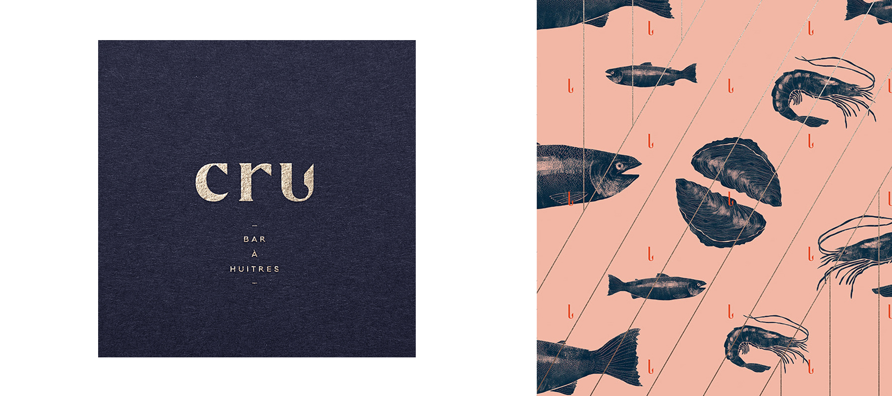 Хороший паттерн помогает донести философию бренда до потребителя. Если воздушный цветочный паттерн идеально подходит для романтичной упаковки чая, то это не значит, что нечто подобное можно использовать для всех чаев на свете. Хороший пример того, как паттерн транслирует суть компании, – дизайн фирменного стиля бара Cru. В этом случае дизайнеры в качестве узора использовали морских обитателей. Это сразу дает понять, на какой кухне специализируется этот бар. А еще здесь можно заметить маленькую деталь – буква «u» в части логотипа напоминает рыболовецкий крючок, и его тоже вплели в паттерн.