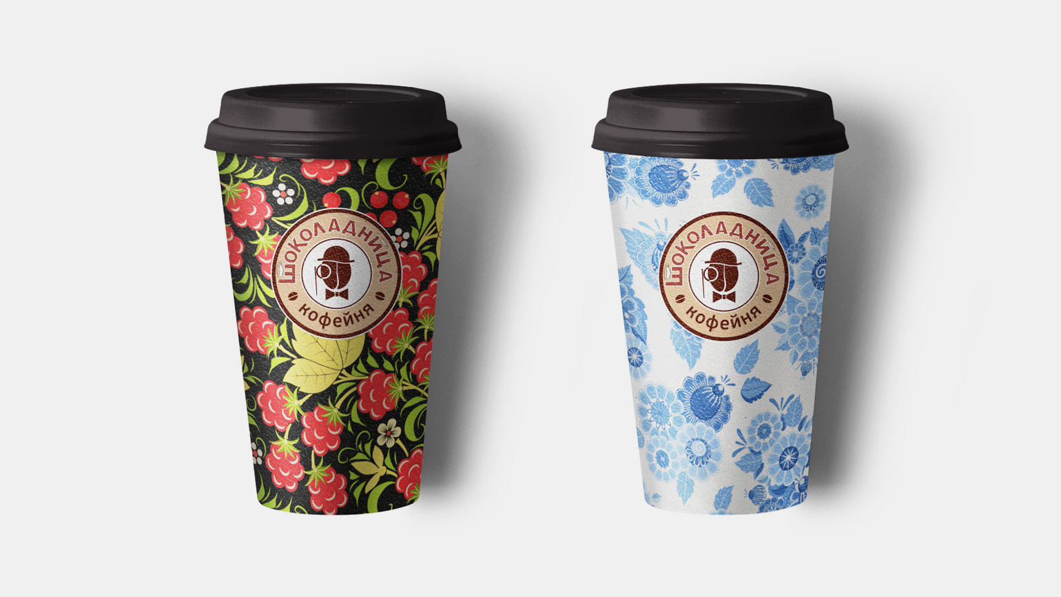 Из-за того, что паттерны не боятся изломов и искривлённой геометрии, они так широко распространены в упаковке. Например, паттерн с мотивами под хохломскую и гжельскую роспись используется в дизайне стаканчиков «Шоколадницы».
