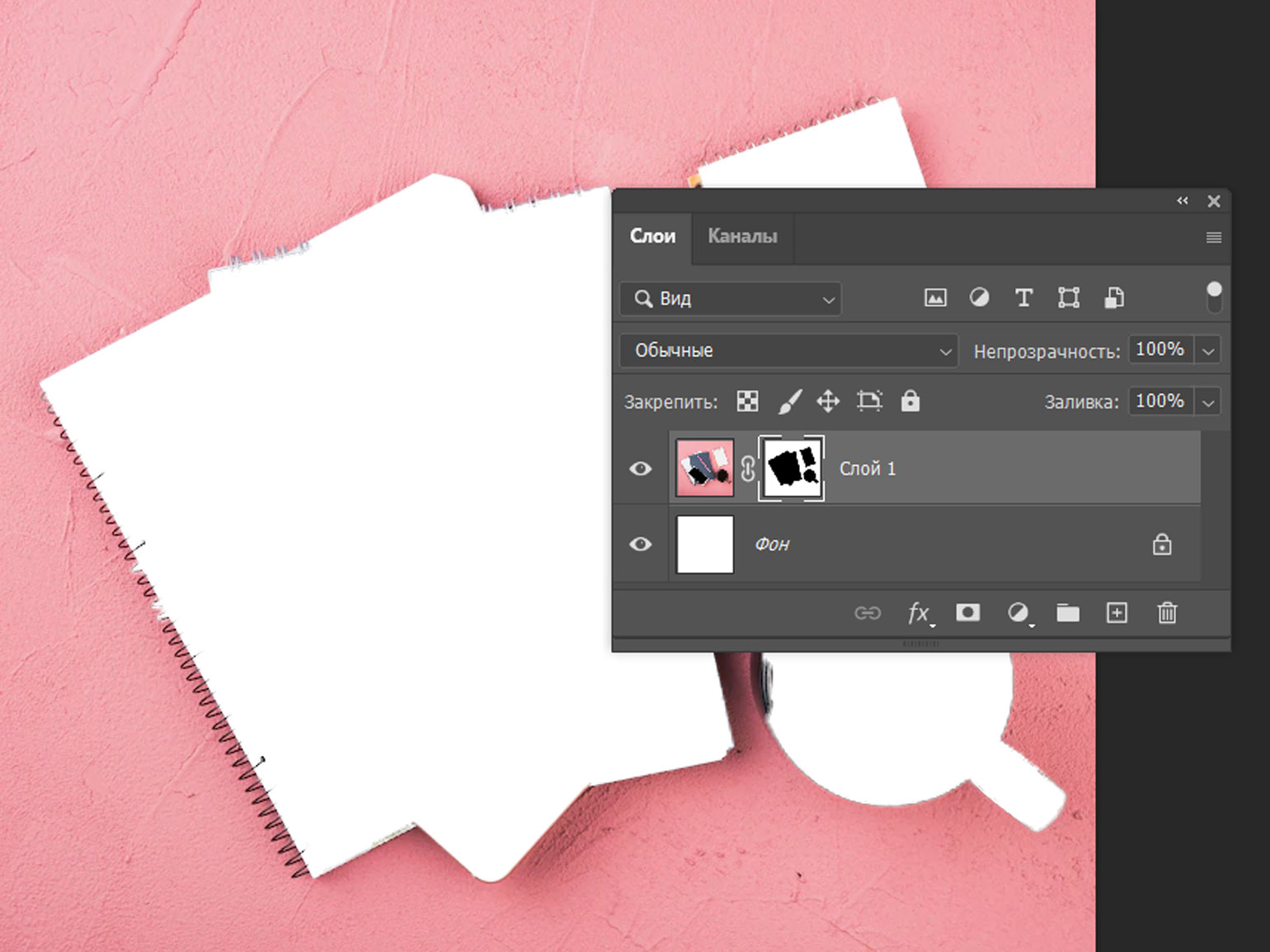 Чтобы создать маску на основе выделения, нужно нажать на иконку «Добавить слой-маску» (Add Layer Mask) внизу панели «Слои» (Layers). Белые участки на слое-маске отвечают за непрозрачные области. Чёрные ― прозрачные участки.