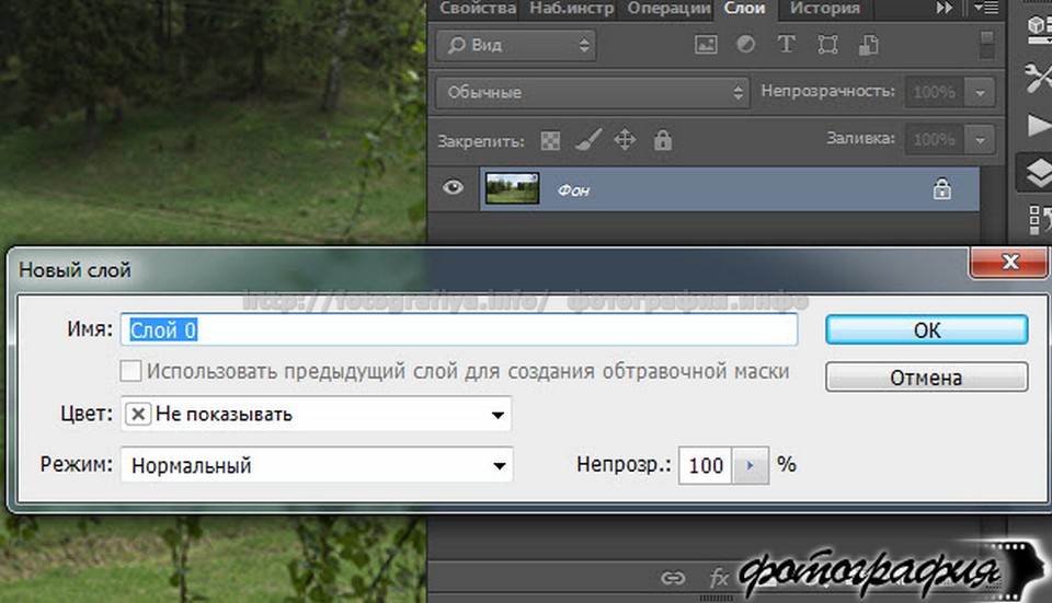 Далее нужно избавиться от проводов. Их лучше удалить при помощи кисти. Но сначала необходимо разблокировать текущий слой. Для этого перейдите в панель «Слои», где нужно совершить двойной щелчок левой кнопкой мыши по наименованию «Фон». Вам будет предложено дать слою новое название. Воспользуйтесь этой возможностью и нажмите кнопку «OK».