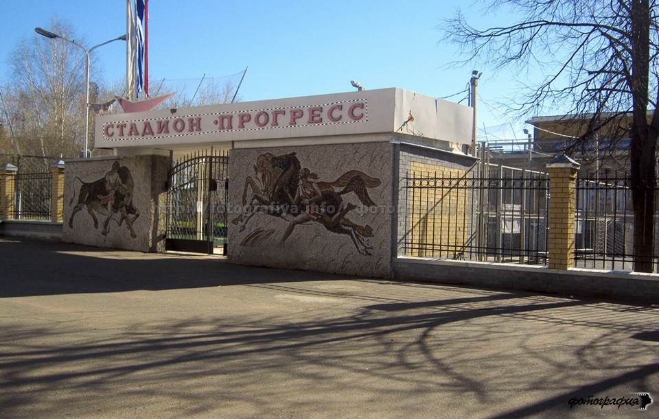 Сперва мы попробуем удалить вывеску со входа на стадион. Вывеска представляет собой отдельные буквы, нанесенные прямо на поверхность арки. Фон равномерный, что должно поспособствовать грамотному устранению объекта.