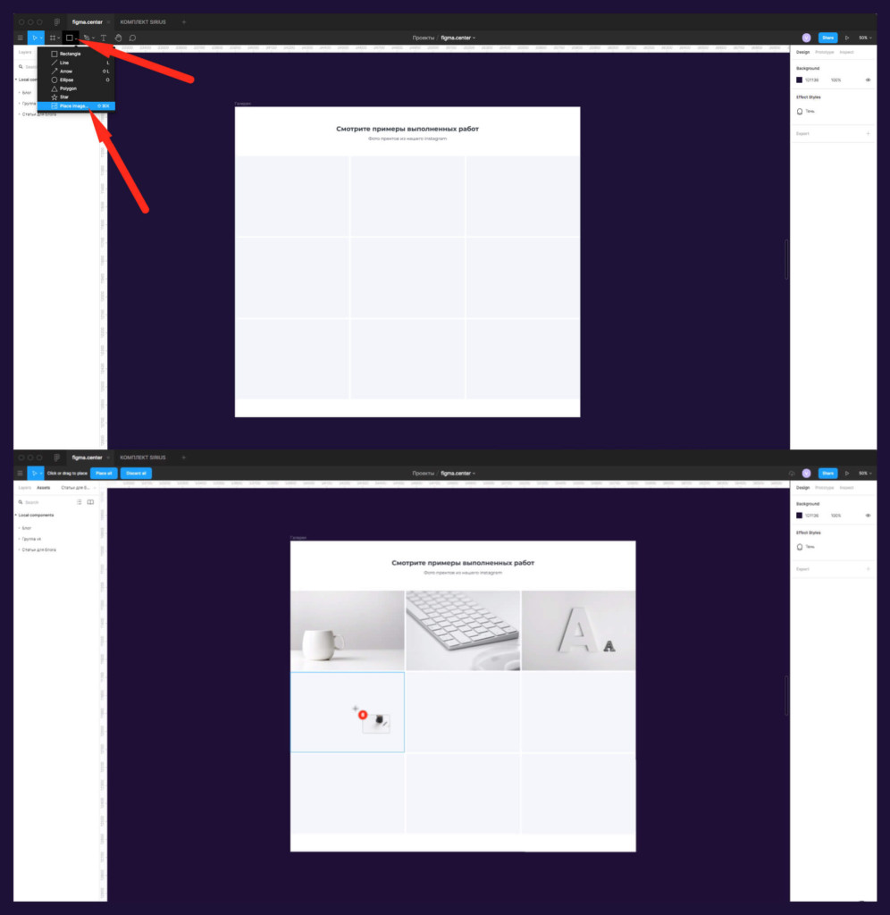 Вы можете вставлять картинки в любые фигуры созданные в фигме. Это может быть круг, прямоугольник, квадрат, звезда, многоугольник и т.д. Также с помощью этого способа можно сделать фон картинкой в фрейме.