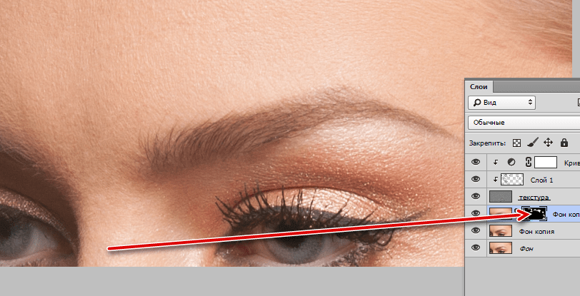 Выделяем участок кожи, комбинацией Ctrl+F применяем фильтр с настройками, сделанными ранее. То есть если использовался фильтр «Размытие по Гауссу» с радиусом 5 пикс. он будет применён к выделенному участку с такой настройкой, при этом диалога фильтра не появится.