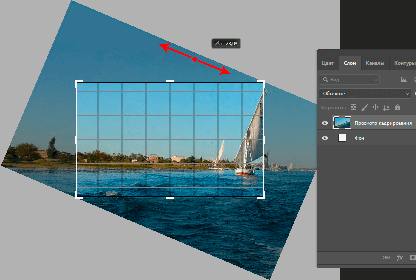 Быстро выровнять горизонт в Photoshop CC 2019 поможет инструмент «Рамка» (Crop Tool). Во-первых, фотографию рамкой можно вращать. При вращении разметка внутри рамки превращается в сетку из горизонтальных и вертикальных линий. Соответственно, для выравнивания горизонта достаточно повернуть фотографию так, чтобы горизонт на ней стал параллелен горизонтальной линии сетки. Во-вторых, у инструмента «Рамка» имеется функция «Выпрямить» (Straighten). Если включить ее, то можно провести опорный отрезок по линии горизонта на фотографии, которая автоматически выровняется, как только будет указана вторая точка отрезка. В-третьих, если, прежде чем выполнить кадрирование, включить опцию «С учетом содержимого» (Content-Aware), то образовавшиеся в кадре после поворота фотографии пробелы, будут автоматически заполнены подходящей заливкой…