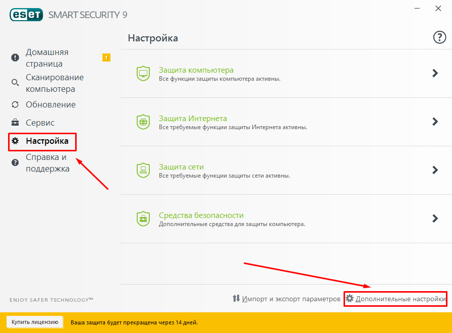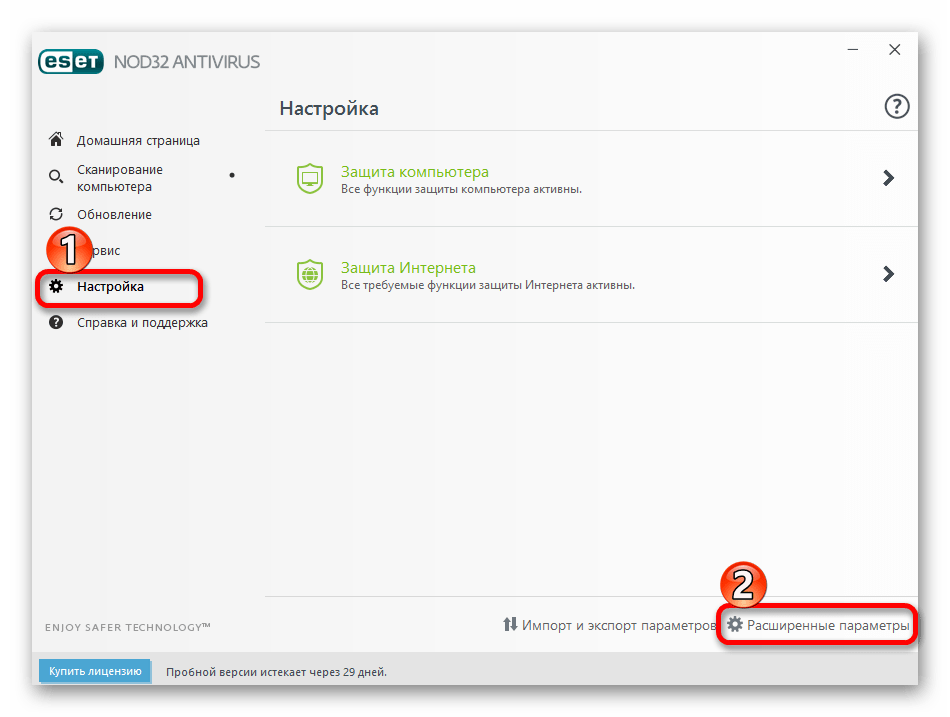 Настройка антивируса NOD32 Smart Security на Windows 10