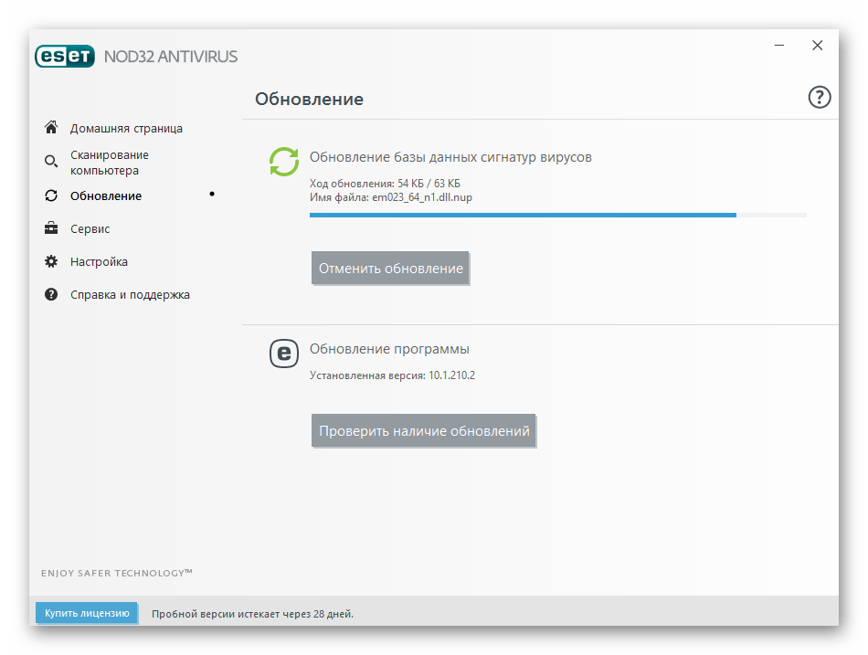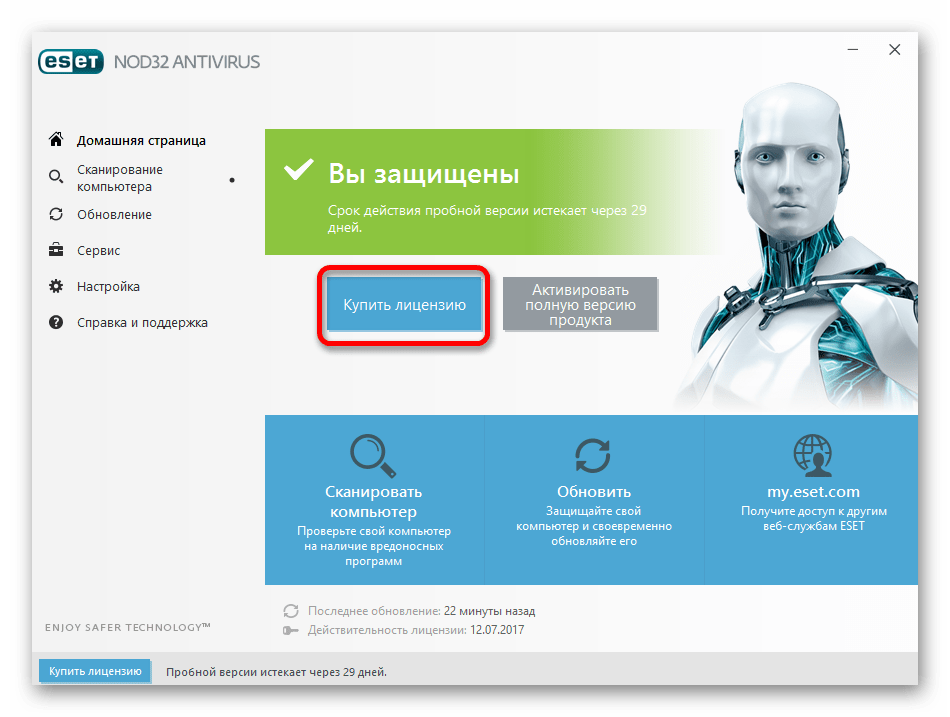 - Зайдите в NOD32 и выберите «Купить лицензию».