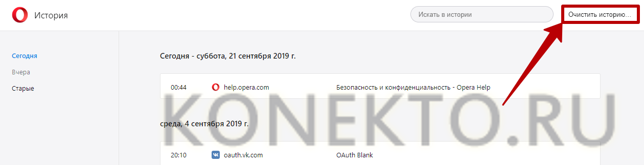 - В правом верхнем углу появляется кнопка «Очистить историю посещений»;
