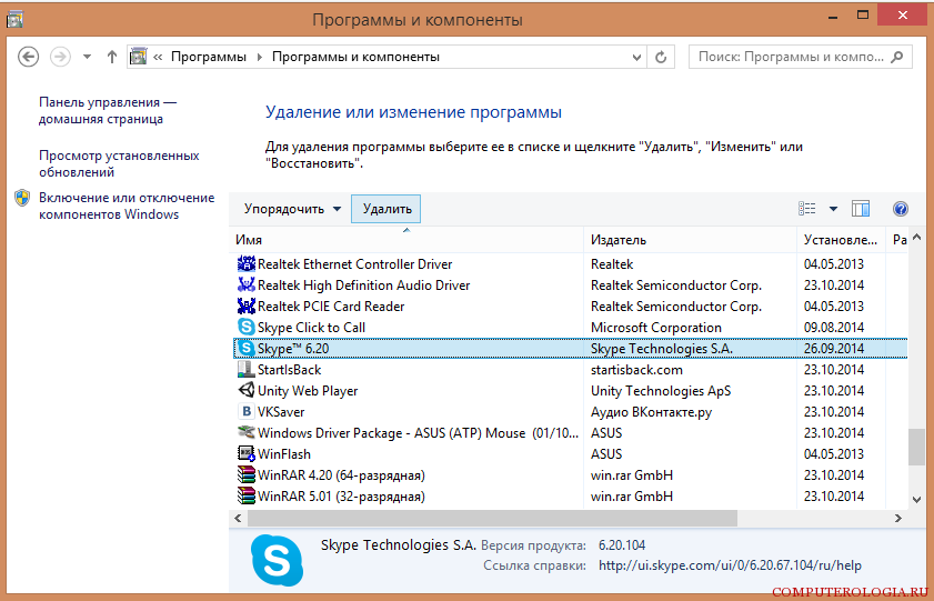 - «Skype – удалить/изменить – удалить».