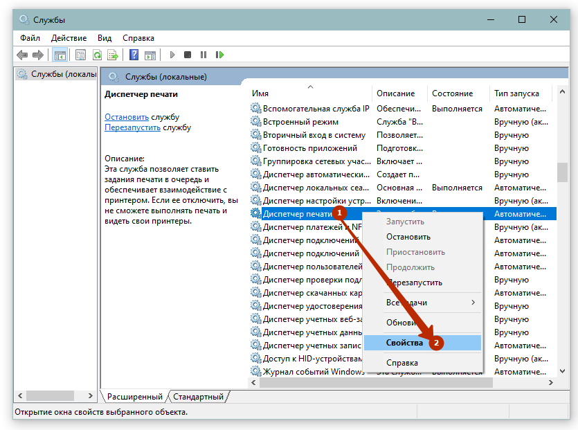 - В появившемся окне найдите строку «диспетчер очереди печати».