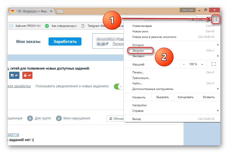 В интернет-обозревателе переходим в папку загруженных файлов. Например, в Гугл Хром для этого нужно нажать сервисную кнопку с тремя точками, расположенными вертикально и в выпавшем меню выбрать строку «Загрузки». Можно использовать комбинацию клавиш Ctrl+J.