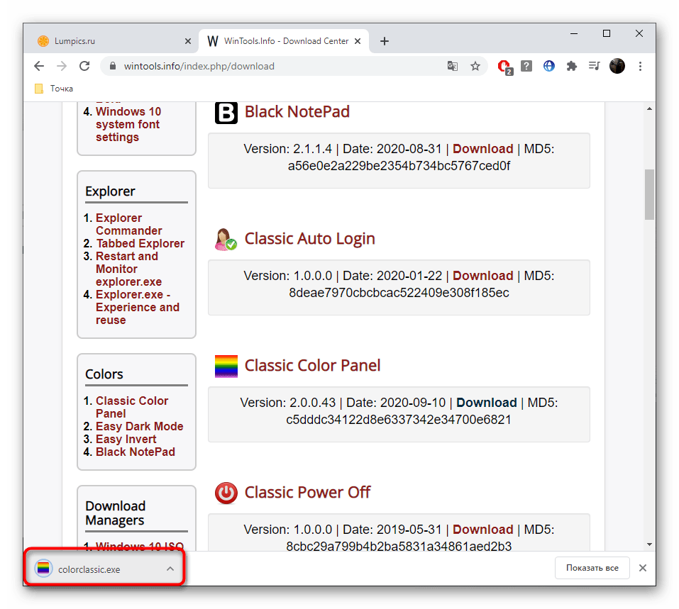 Некоторые пользователи предпочитают сторонние программы стандартным функциям, поскольку они кажутся более удобными и продвинутыми. Одной из лучших считается Classic Color Panel, которая идеально подойдет для смены цвета окна в Windows 10.