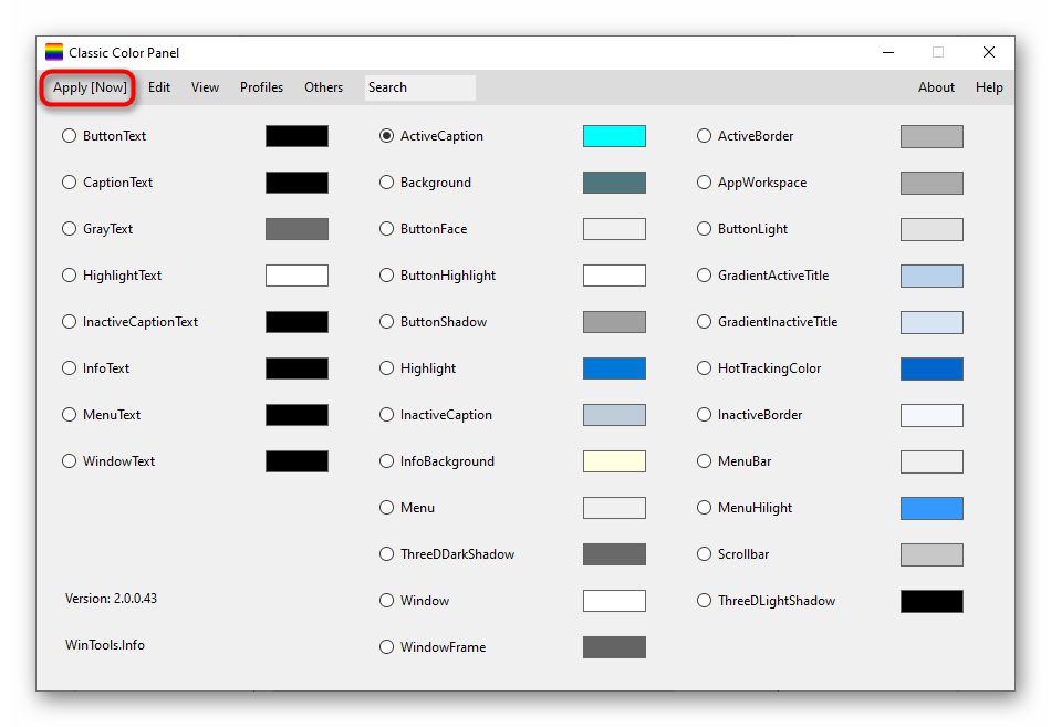 В самой программе Classic Color Panel ознакомьтесь с присутствующими пунктами и решите, цвет каких элементов вы хотите изменить.