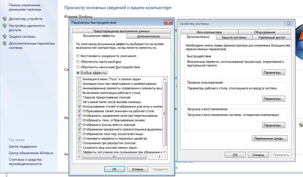 Для тех кто забыл, напоминаю, что, например в Windows 7 файл подкачки меняется по этому пути: «Пуск — Настройка — Панель управления — Система — Дополнительные параметры системы — Дополнительно — Быстродействие — Параметры» (в панели управлении включите мелкие значки, чтобы увидеть категорию «Система»)