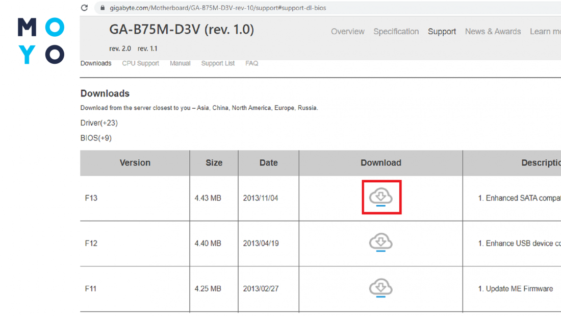 - Старайтесь избегать использования незаконченных (бета) версий прошивки, а также программного обеспечения, которое предназначено для другой версии материнской платы GIGABYTE (различия даже 1 цифры в номере модели недопустимо). Исключение можно сделать только в том случае, если производитель выпустил единую версию биос, поддерживающую несколько различных плат. Допустим, модель вашей материнской платы GIGABYTE GA-B75-D3H, а прошивка представлена для моделей серии GA-B75-xxx.