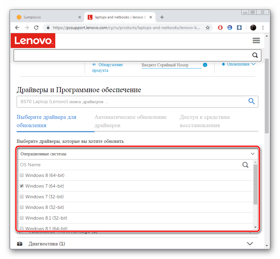 - Остановитесь на разделе с драйверами для обновления устройства. Обычно нужно указать, какой версией Windows вы пользуетесь, после чего вы сможете просмотреть список доступных новых драйверов.