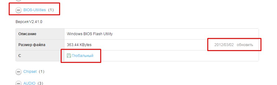 Открываем вкладку bios и качаем последнюю версию.