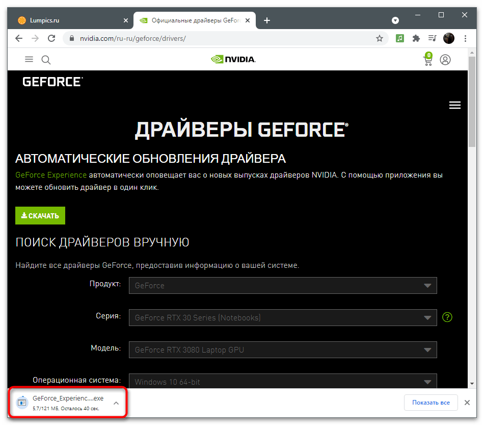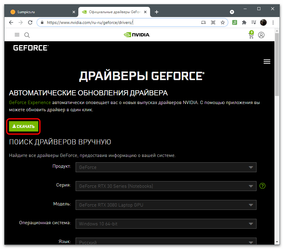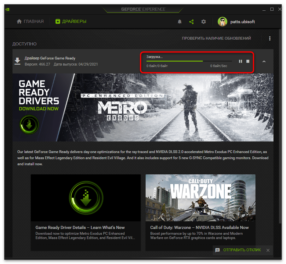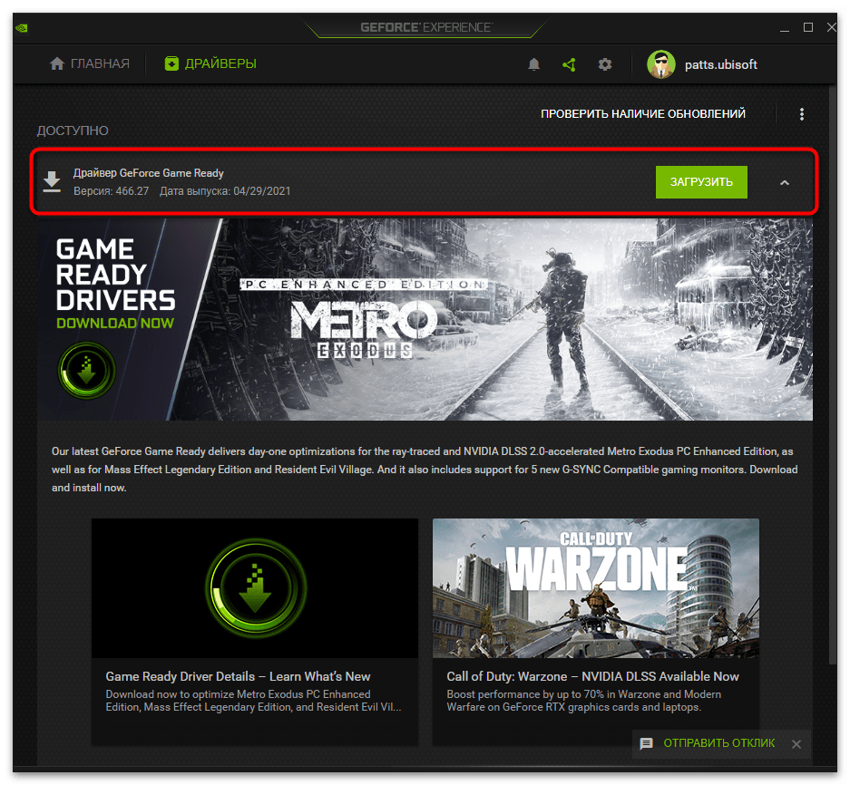 GeForce Experience предназначена не только для взаимодействия с играми — программа отслеживает обновления для драйвера видеокарты и предлагает установить их в автоматическом режиме. Мы рекомендуем проверить наличие новой версии, поскольку как раз после ее инсталляции проблема может исчезнуть сама собой.