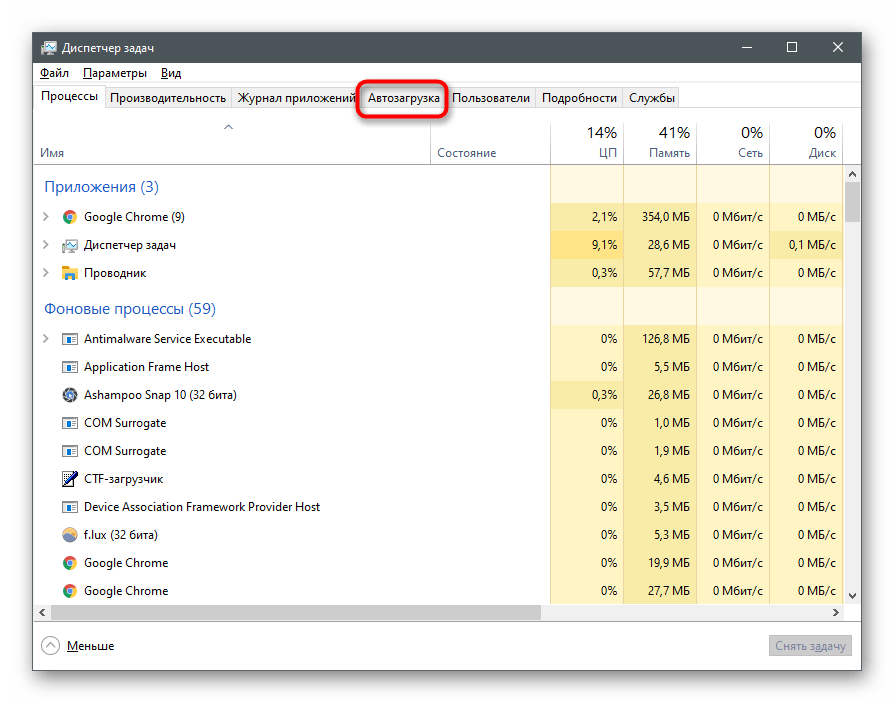 Теперь эта программа должна не только перестать запускаться вместе с ОС, но и отображаться в «Автозагрузке» при просмотре этой вкладки через «Диспетчер задач». Если понадобится снова автоматически включать софт, просто добавьте его ярлык в ту же папку.