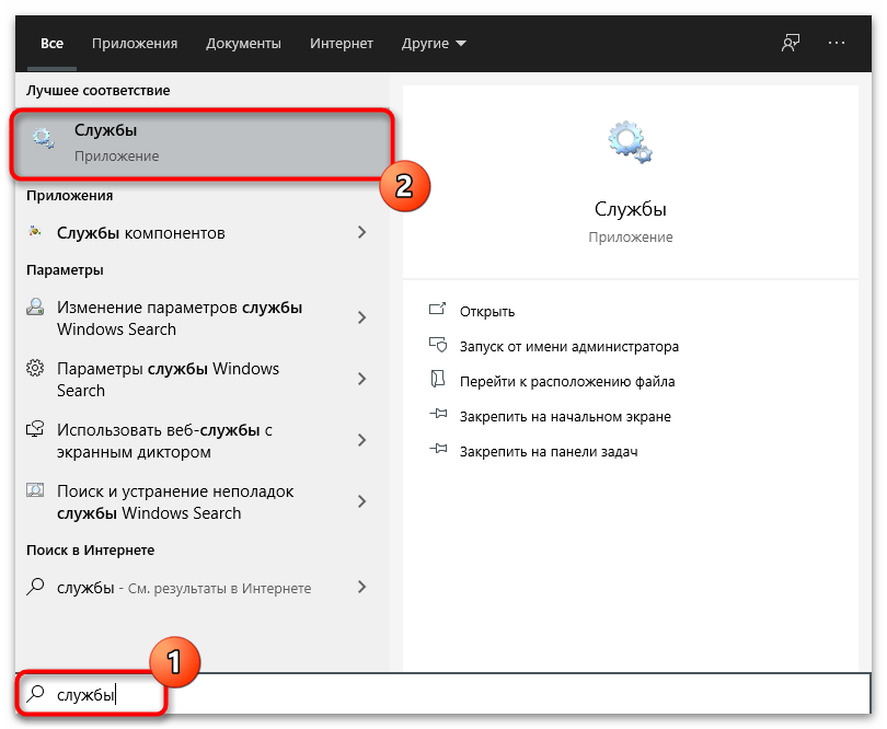 - Откройте «Пуск», через поиск отыщите «Службы» и перейдите в это приложение.