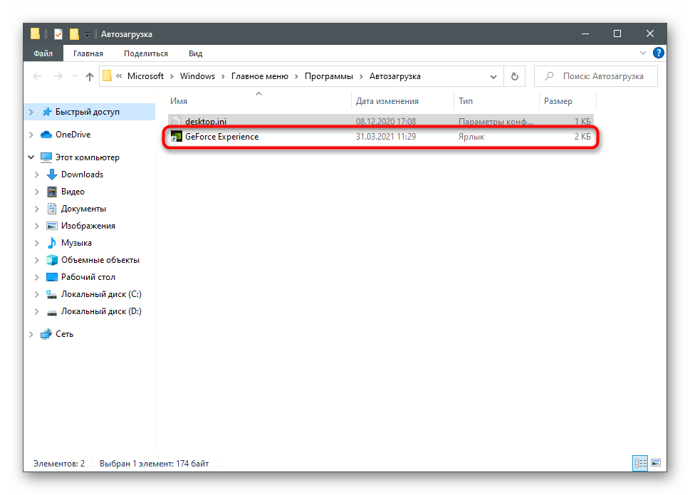 После выполнения подобных действия GeForce Experience больше не должна запускаться вместе с Windows, однако если это происходит, следует проверить и папку автозагрузки, удалив оттуда ярлык, если тот в ней находится.