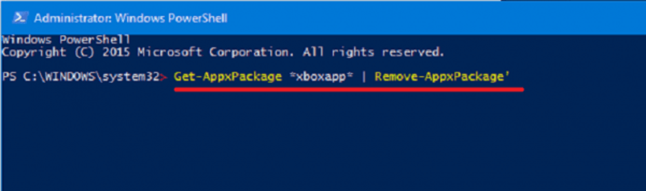 - Ввести команду: «Get-AppxPackage *xboxapp* | Remove-AppxPackage». Нажать клавишу ввода.