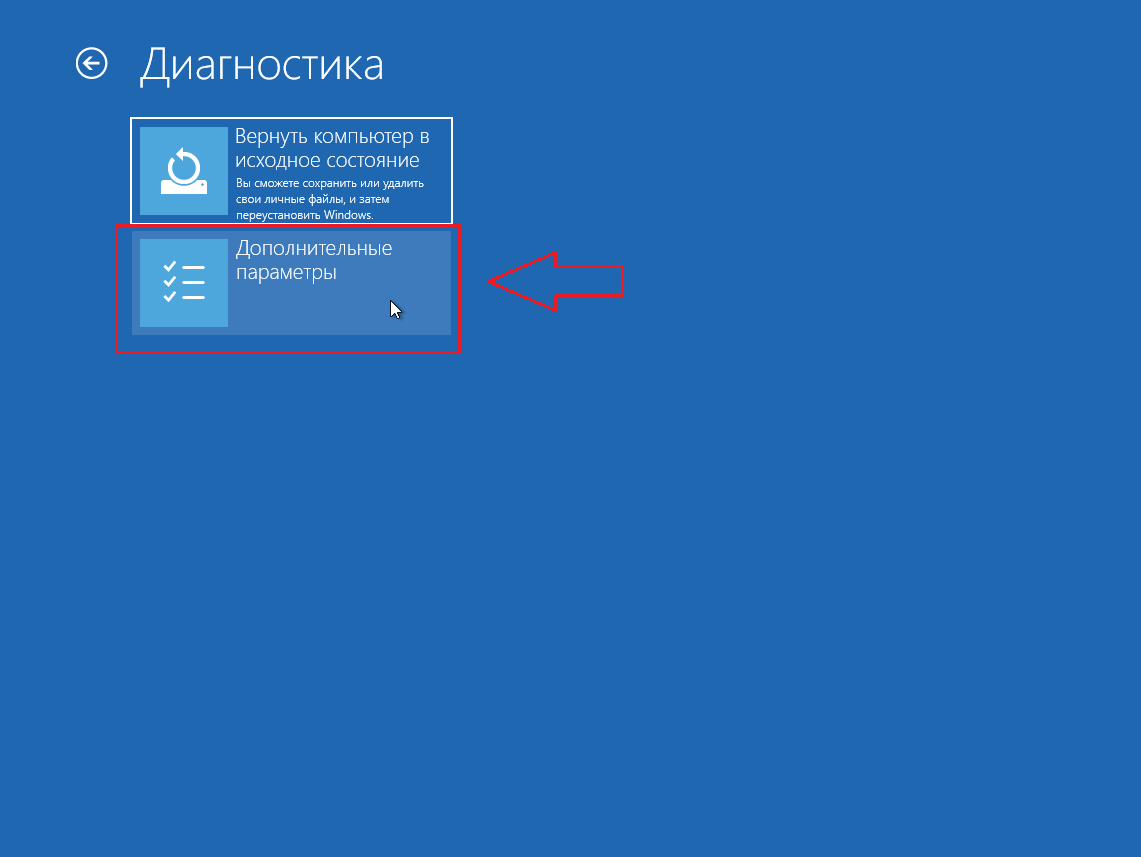 - В окне «Диагностика» нажмите на «Дополнительные параметры».
