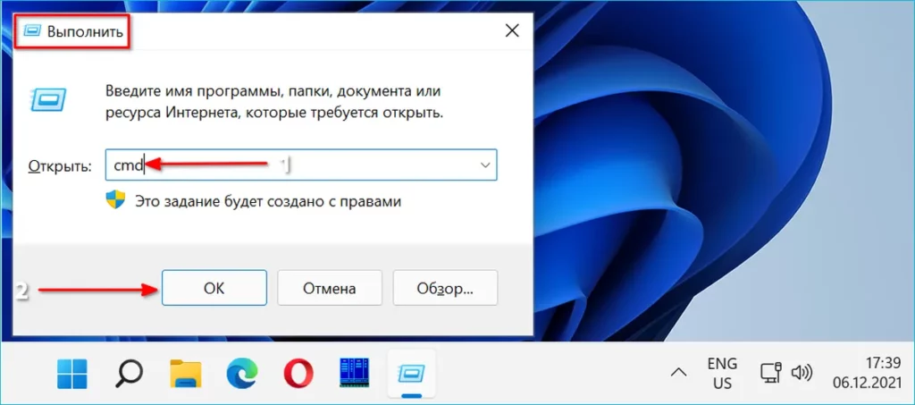 Введите CMD и нажмите Enter либо кликните по кнопке «OK».