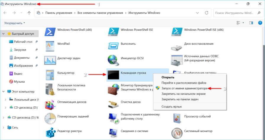 Чтобы запустить командную строку от имени администратора, нажмите на ярлык правой кнопкой мыши и выберите соответствующий пункт.