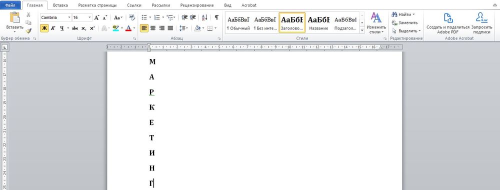 Казалось бы ничего необычного в этом действии нет, но эта функция (перевёрнутый текст) очень редко используется. Вот, что должно в итоге получится.