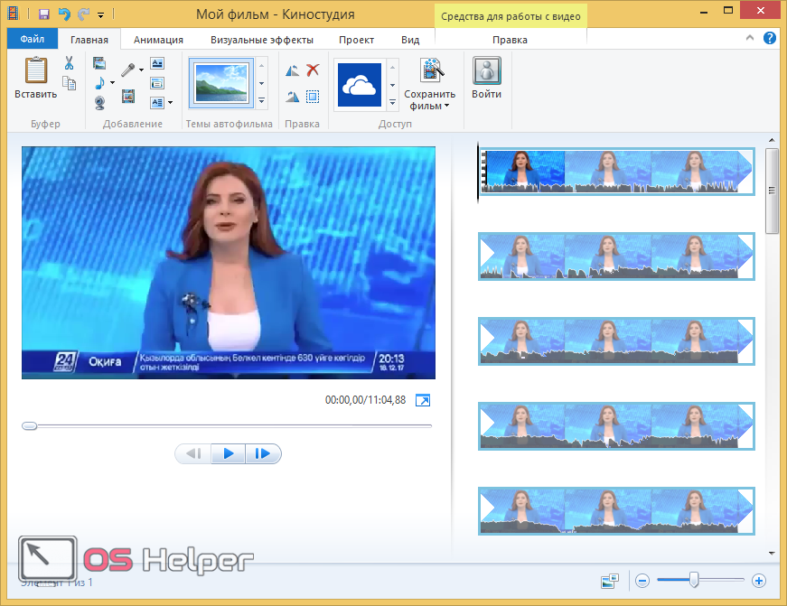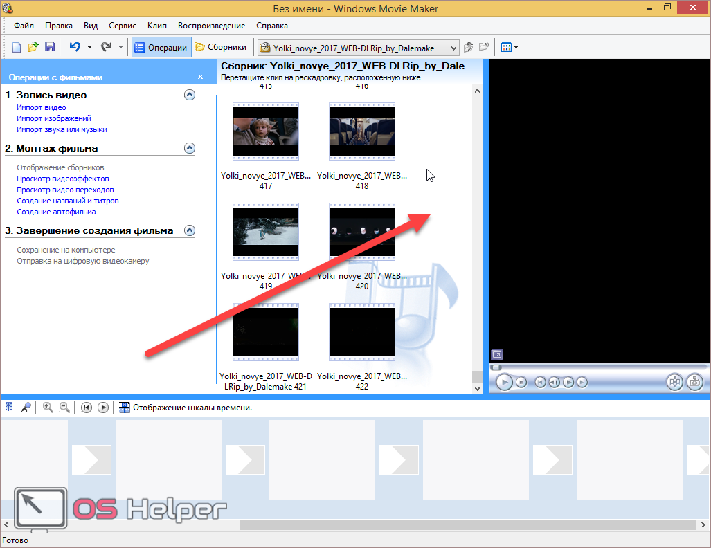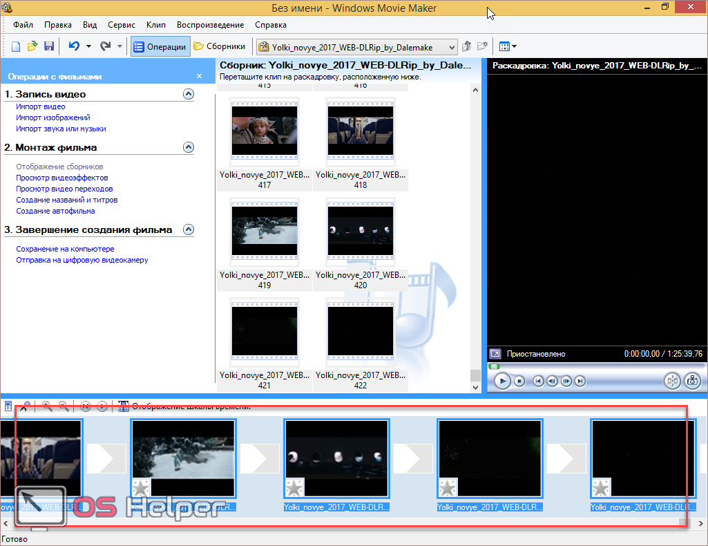 Наиболее простой вариант фильма, это ролик из изображений. Поэтому покажем на этом примере. С видеофайлами все происходит по этому же принципу.