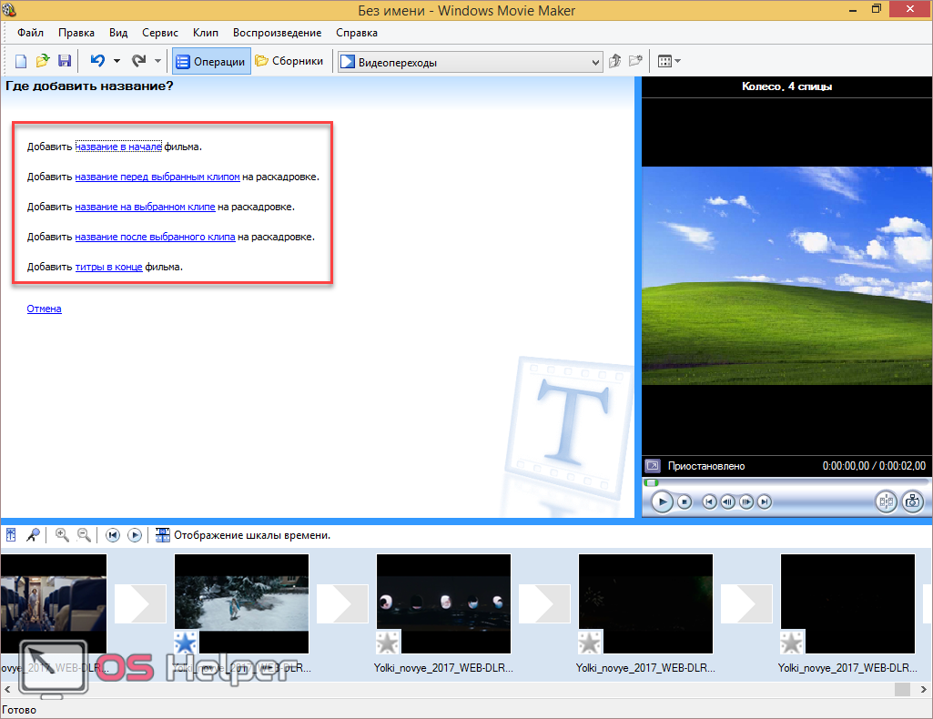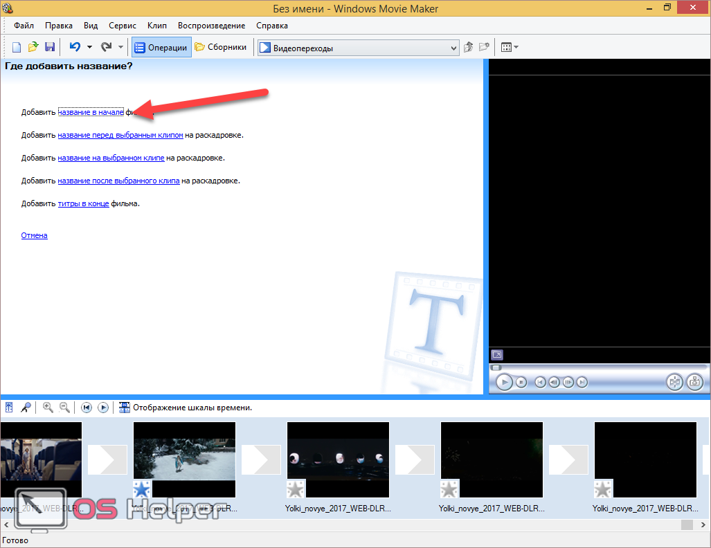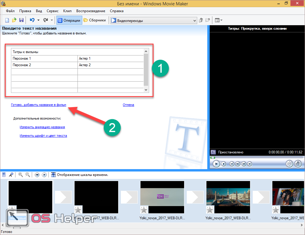 Для создания законченного видеоролика можно наложить заголовок или титры: